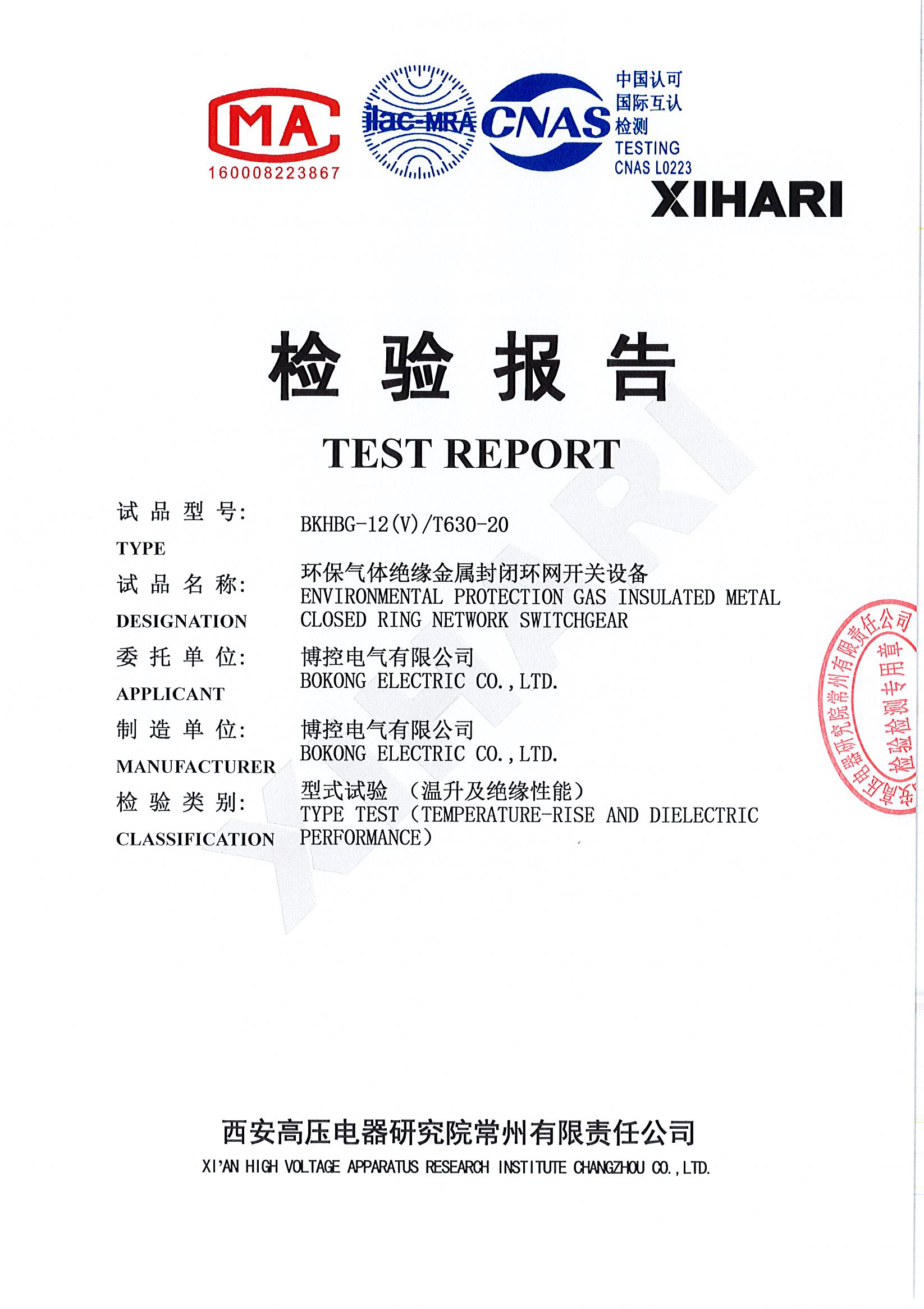 环网箱(固体绝缘)型式试验报告